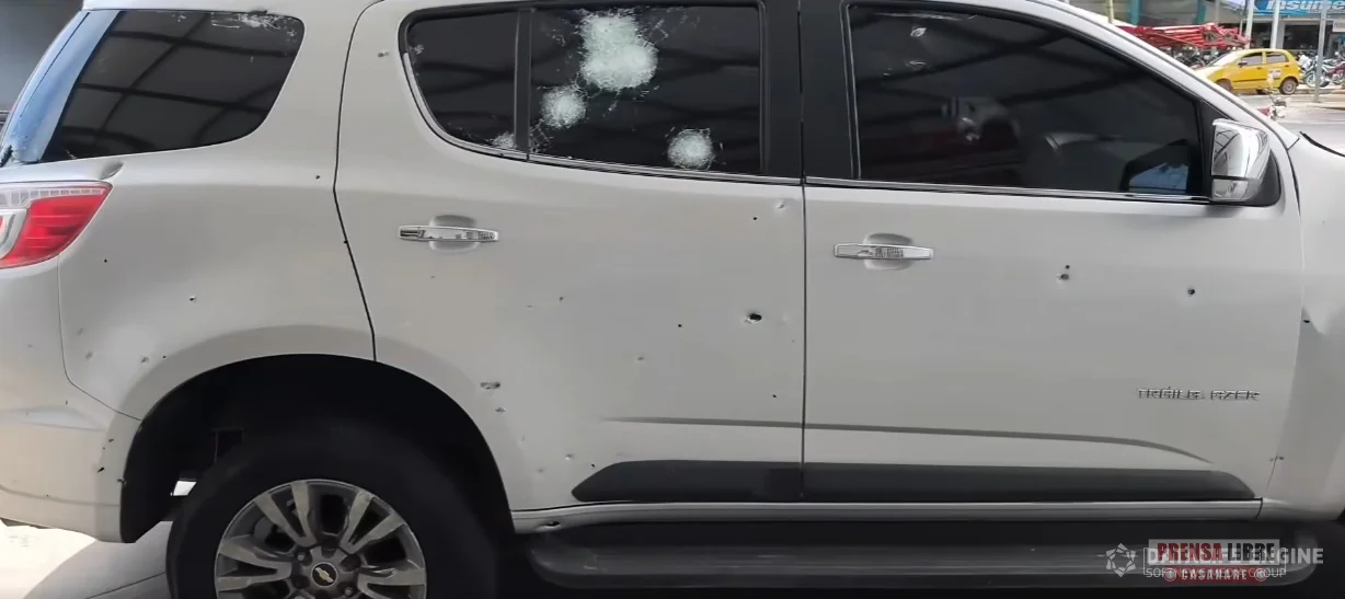 Los vehículos quedaron bastante averiados tras la acción violenta. El político araucano había sufrido otro atentado en febrero de 2022 en la vía Fortul - Tame.