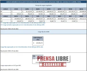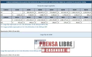 COINOGAS S.A. E.S.P informa a todos los agentes del mercado de gas, que las tarifas para las parejas de cargos temporales del gasoducto Floreña-Yopal y Aguazul-Yopal para el mes de AGOSTO hasta DICIEMBRE de 2025 son las siguientes: