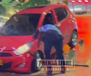 Una pareja que se movilizaba en aparente estado de embriaguez protagonizó un aparatoso accidente en el centro de Yopal. Inicialmente, frente al colegio Salvador Camacho Roldán, los ocupantes del vehículo Hyundai de placas HACQ 214, no atendieron el llamado de la comunidad tras chocar contra otro automotor y emprendieron la huida por la carrera 21, giraron por la calle 7.