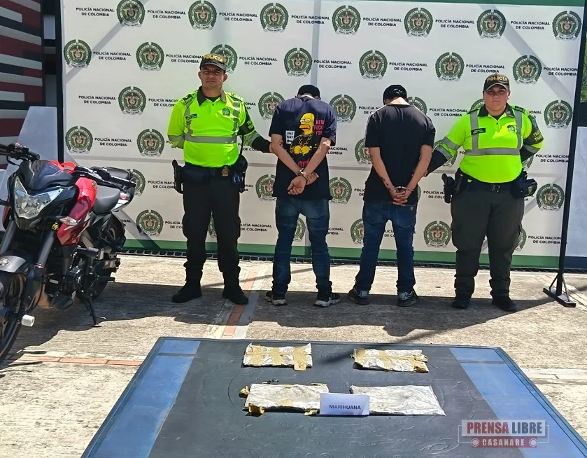 Dos personas fueron capturadas en flagrancia por el delito de tráfico de estupefacientes en las vías del departamento de Casanare. El procedimiento se adelantó en la carretera que comunica a Monterrey con Yopal, donde las autoridades intensifican los controles para contrarrestar este tipo de conductas ilícitas.