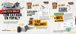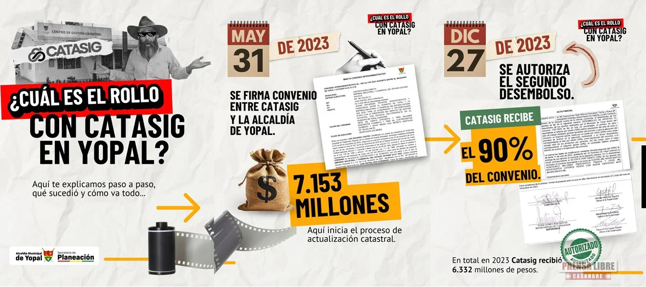 Adicionalmente, la Contraloría General de la República informó sobre un presunto daño patrimonial por $6.332.000.000 correspondiente a recursos desembolsados a los prestadores de servicio catastral. El municipio radicó demanda de nulidad del convenio e impuso multa por $373.000.000 ante incumplimientos reiterados y falta de respuesta a requerimientos oficiales.