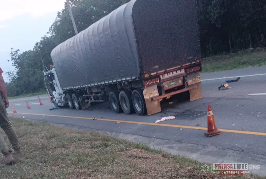 Dos motociclistas que se desplazaban en contravía murieron tras ser arrollados por una tractomula en la vía Yopal - Aguazul