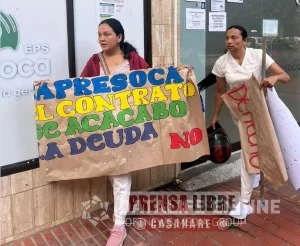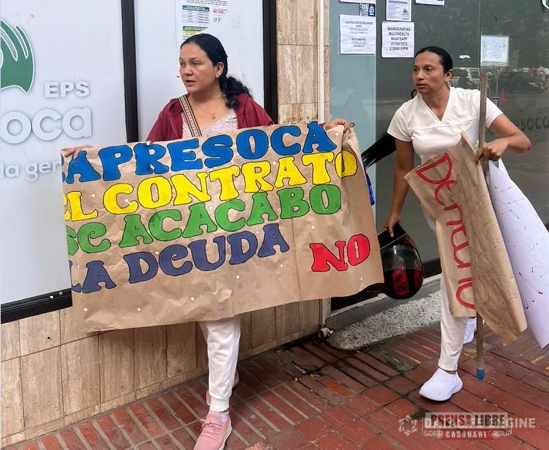 Auxiliares de enfermería y trabajadores del sector salud realizaron una manifestación a las afueras de la EPS Capresoca en Yopal, denunciando el no pago de sus salarios desde hace varios meses. Según los afectados, la deuda corresponde a servicios prestados a través de la IPS Promed, situación que hoy impacta a cerca de 150 a 200 trabajadores.