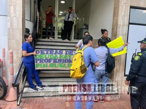 Trabajadores de la IPS Promed protestaron frente a Capresoca en Yopal por falta de pago. Denuncian millonaria deuda