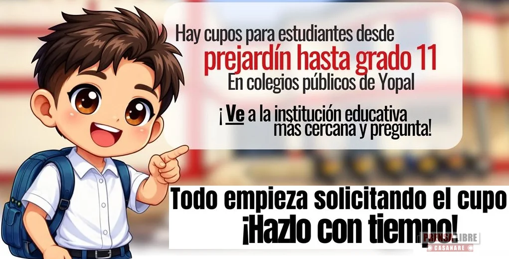 “El mensaje es sencillo: ningún niño, niña o joven debería quedarse por fuera del colegio por falta de información o por dejar el trámite para última hora”, explicó el secretario de Educación de Yopal, David Díaz, quien reiteró que la educación pública sigue siendo una oportunidad abierta para toda la comunidad.