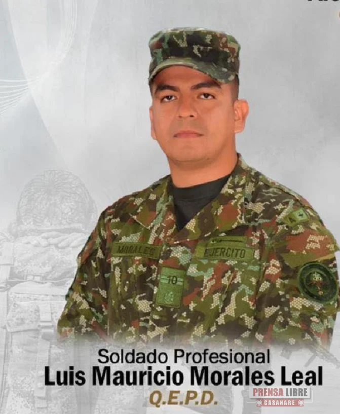 El soldado profesional Luis Mauricio Morales Leal, del municipio de Aguazul, murió en un ataque armado ocurrido en zona rural de Cartagena del Chairá, departamento de Caquetá.